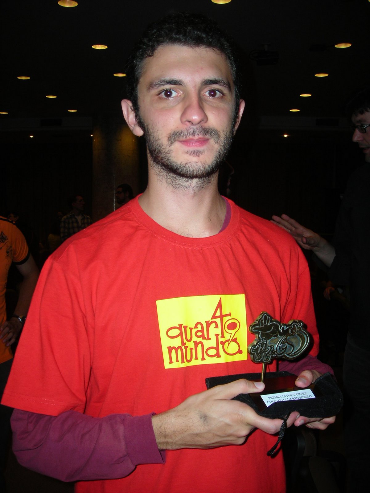 No Ângelo Agostini, a melhor coisa foi rever os colegas do Quarto Mundo. Dei um salto no Laudo assim que o vi, hehehehe, e estavam lá o Edu Mendes, Marcos Venceslau, Will, Alex Mir e toda a galera. Haviam sido premiados, o Daniel Esteves (melhor roteirista) e o Laudo (melhor caricaturista) e o Quarto Mundo ganhou o Prêmio Jaime Cortez.