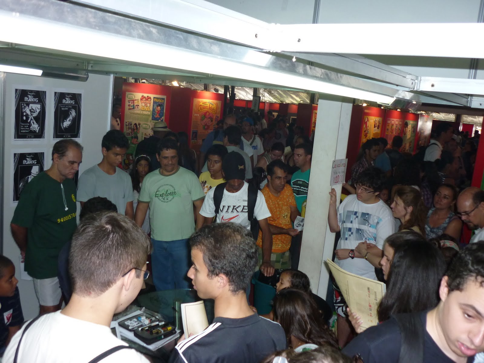O Chamado da Quimera, que supostamente teria o lançamento sábado, 15h, teve todas as edições esgotadas às 14:55h. Demais Quadrinhópole esgotaram, com exceção da #8. Esse foi um dos pontos bons. Um dos pontos ruins é que, no meio da correria toda, as prateleiras começaram a cair… percebemos que a montagem não foi feita de acordo e as prateleiras estão com uma “folga”, não estando apropriadamente fixas nos calços. Aí, qualquer esbarrão traz tudo abaixo, coisa muito fácil de acontecer num movimento desses.