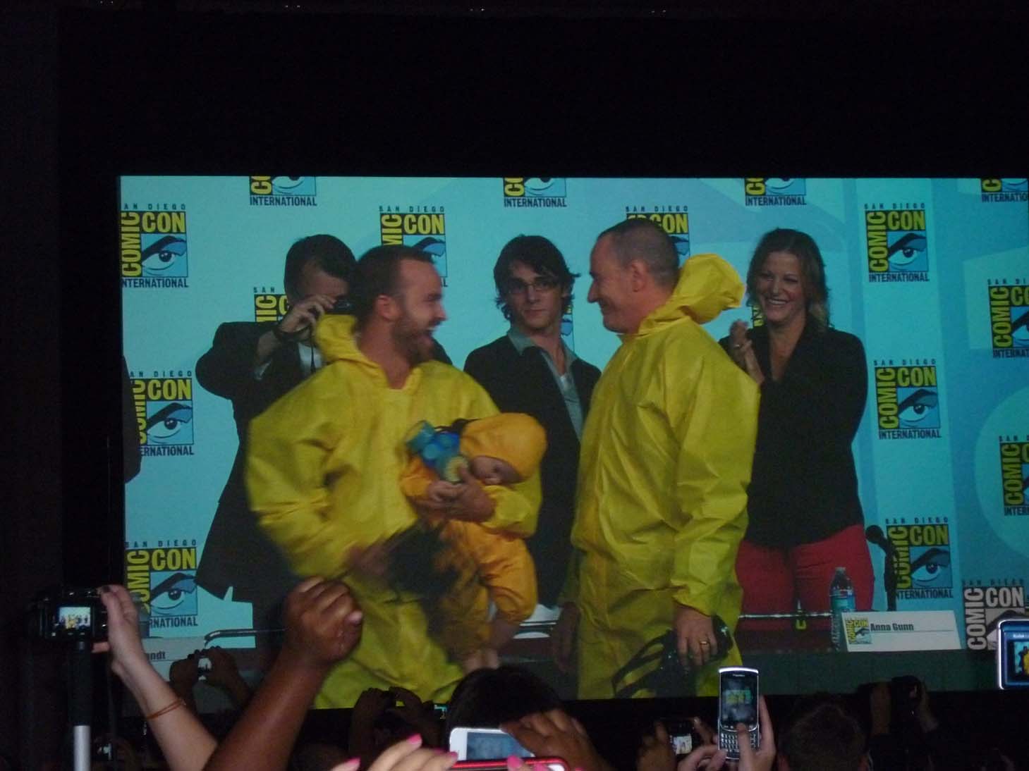 Então furei entrei na fila para a Ballroom 20, onde iria acontecer o painel Breaking Bad. Esse eu não podia perder. Entao, duas horas antes, lá estava eu na sala. Minhas pernas agradeceram o descanso. Cheguei no final do painel de mulheres “kick-ass” dos seriados. Nao reconheci todas pois não acompanho esses seriados e filmes de vampiros, mas lá estava a Olivia Dunham de Fringe. Pelo que deu pra perceber, a mais requisitada, a maioria das perguntas iria para ela, que parece ser bem gente boa.
