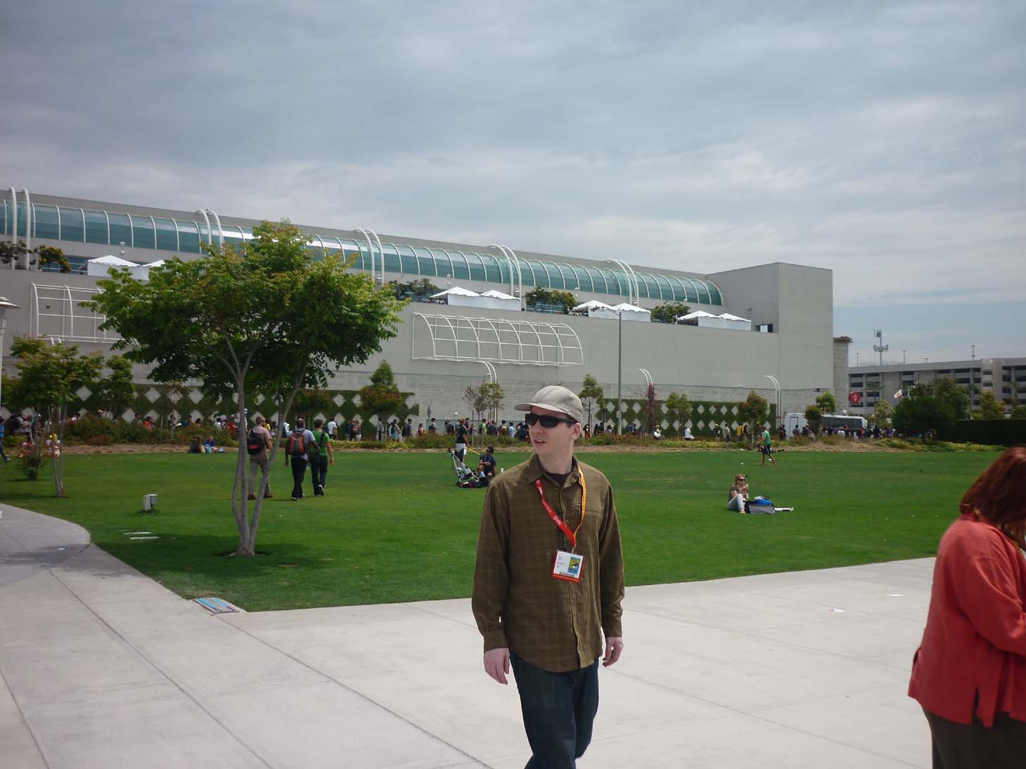 Muito bem, no mesmo Hall H onde teve o painel de Expandables 2 no dia anterior iria rolar o painel de The Big Bang Theory e Walking Dead. Fui lá eu, todo pimpão, quase uma hora antes, esperando que isso seria suficiente pra garantir meu lugar, quando me deparo com uma fila QUILOMÉTRICA (literalmente). Sério, era absurdo. Isso aqui é só uma amostra… tirei duas do lugar onde eu estava. Ela ia em frente, fazia a curva (aquelas pessoas do lado direito da primeira foto é a continuação da fila depois da curva) e continuava em frente. Depois do que se vê na foto ela ainda aí por mais uma quadra até chegar NA ENTRADA da fila pro Hall H. Era praticamente uma fila pra entrar na fila, entende?