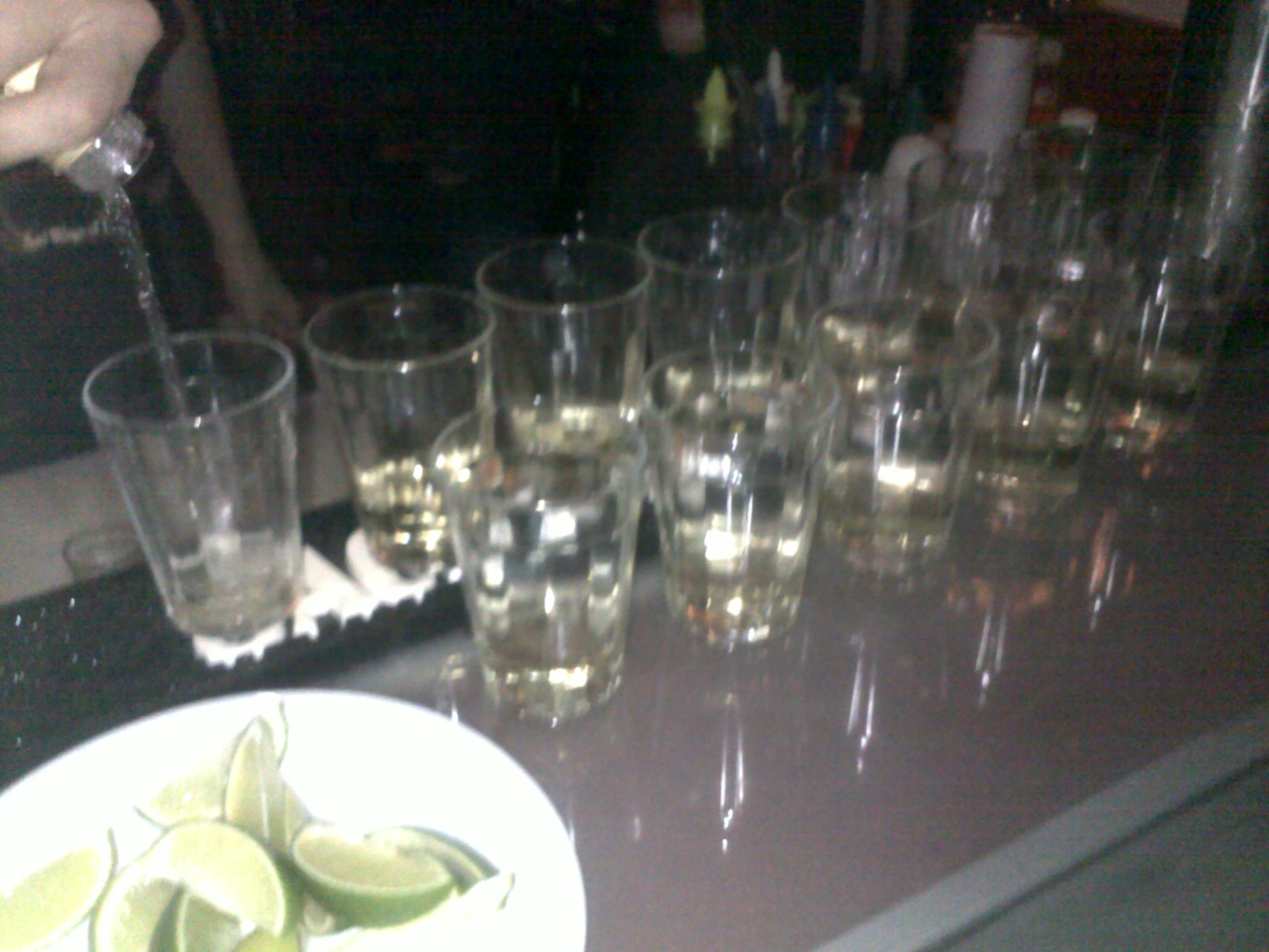 De cara já tomamos uma tequilinha – Eu, Caliman, Jozz e Mario Cau – e ficamos batendo um papo muito maneiro. Logo chegou o resto da turpe e eu certamente não vou lembrar de todo mundo, mas diria que 70% dos autores que estavam no FIQ foram pra lá. E resolvemos fazer uma nova rodada de tequila… COM TODO MUNDO. Como dizem os mineiro, bão demais!
