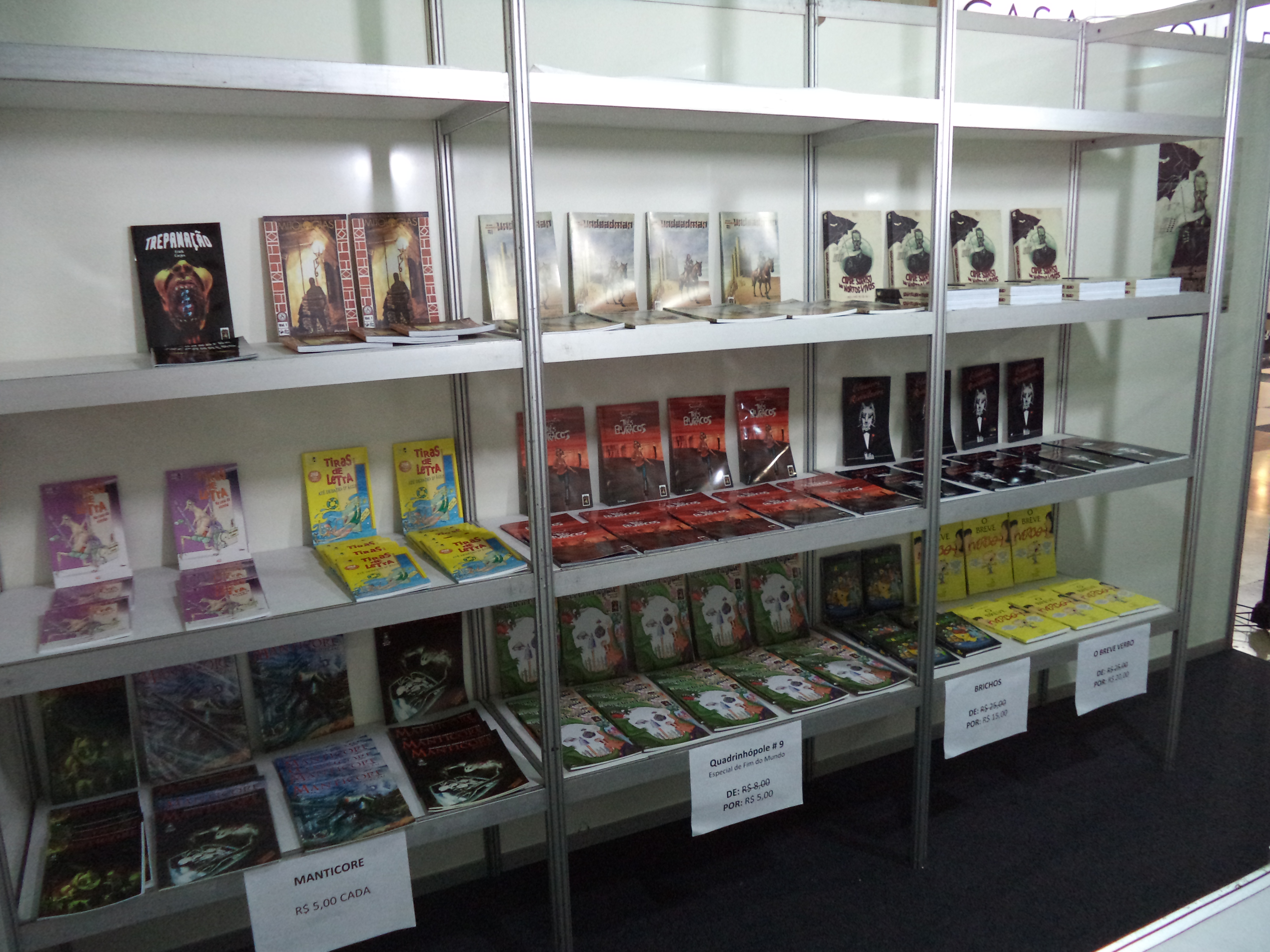 Além dos lançamentos – Clássicos Revisitados e Cidade Sorriso dos Mortos-Vivos – levamos os outros títulos da editora – Undeadman e Sequestro em Três Buracos – além de vários outros títulos como Quadrinhópole, Manticore, Brichos, O Breve Verbo, Trepanação e Mitologias.