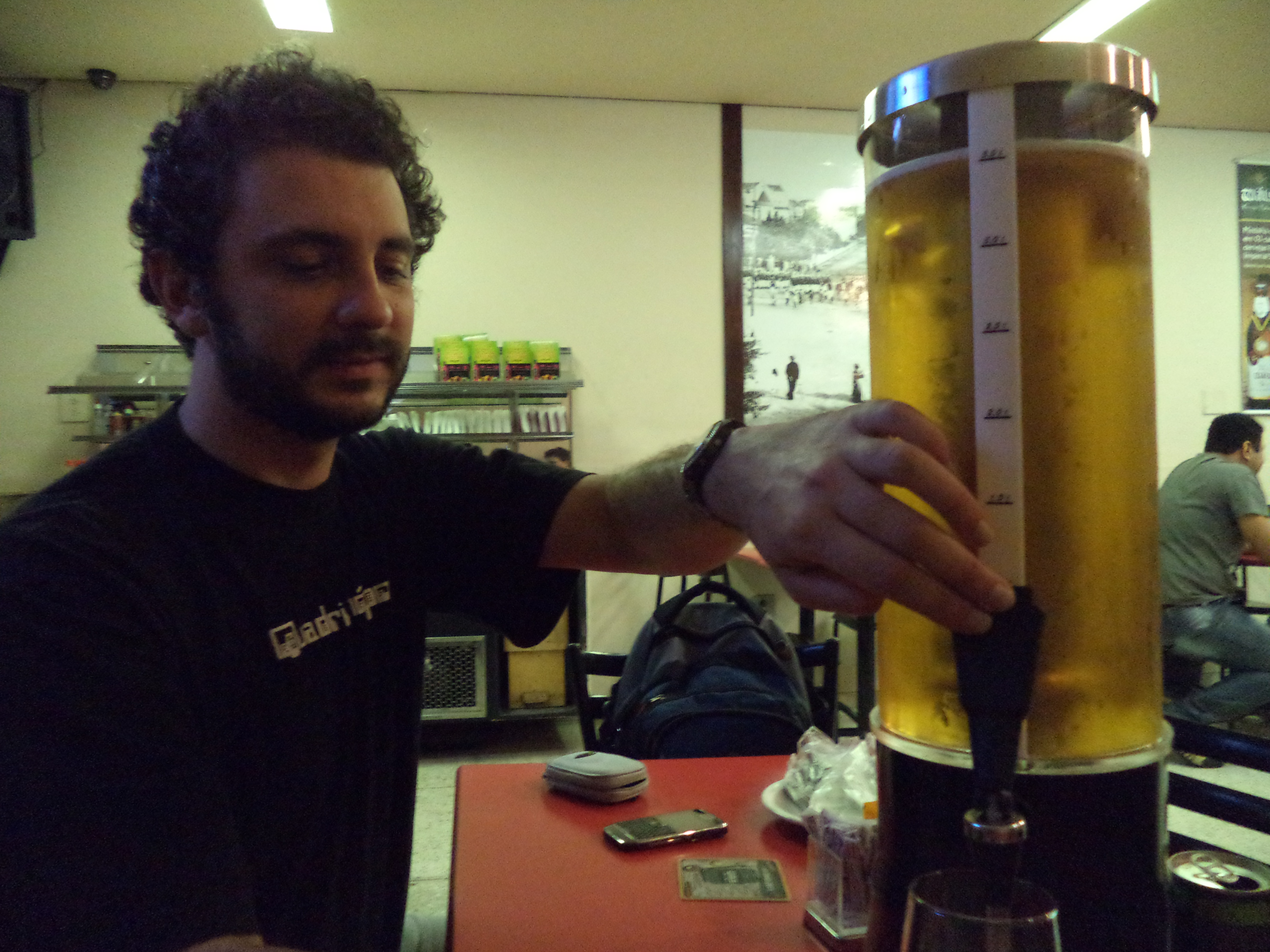 Paulo Kielwagen, Walkir (tentando se esconder) e a torre de chopp
