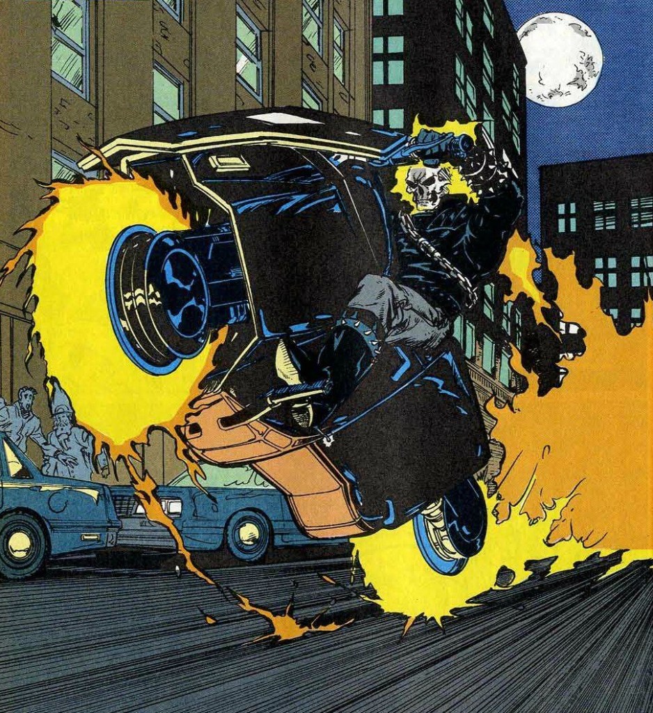 Antes, no entanto, é importante uma breve recapitulação na versão original do herói. Surgido nos anos 70, ele era o motociclista Johnny Blaze, que fizera um pacto com o demônio para tentar salvar seu sogro, Craig “Crash” Simpson. É claro, o cramunhão o trairia, não apenas deixando que Simpson morresse, mas incumbindo Blaze de um poder infernal e um desejo insaciável de punir criminosos.