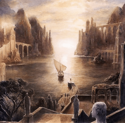 Traduzindo: “Do Grande Mar vim à Terra-Média. Neste lugar habitarei, e meus herdeiros, até o fim do mundo.”