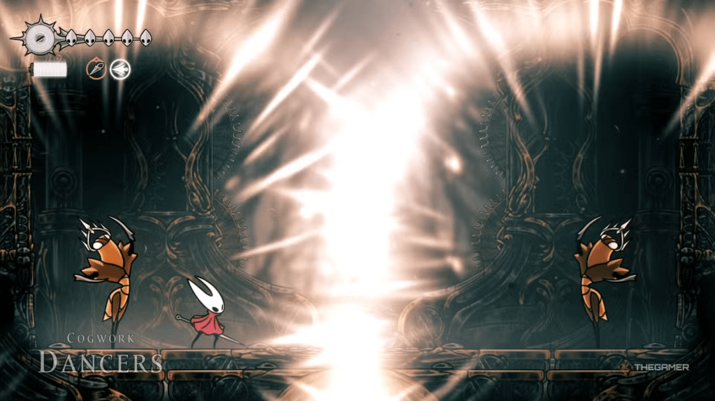 Não é preciso explorar muito a Cidadela nesse momento, sendo que o principal é chegar no objetivo principal e enfrentar os Dançarinos Mecânicos. Apesar de parecerem fáceis, eles são bem desafiadores e aqui foi o único local do jogo onde usei o Brasão da Besta, já que bater neles não é o problema e você está quase sempre com a seda cheia. Justamente por isso, julguei que esse brasão seria útil aqui e usava seu poder para continuar batendo e recuperar vida.
